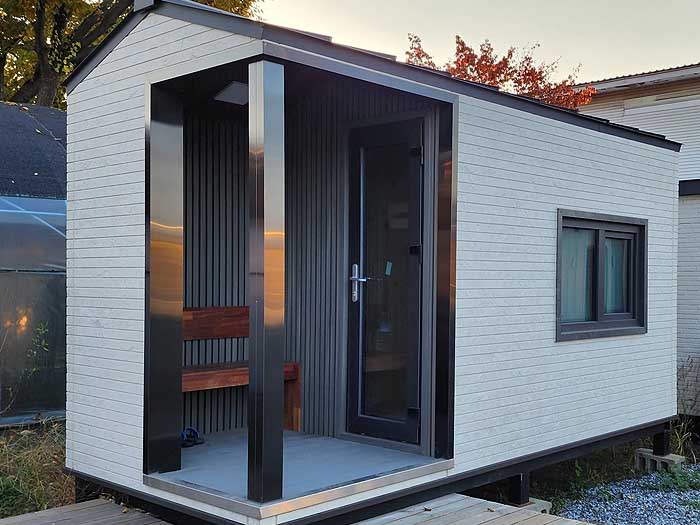 프리미엄 찜질방 외부 . 규격: 4.2m X 2.1m X 2.4m , 외부설치용 - 외부 어디에나 설치가능.